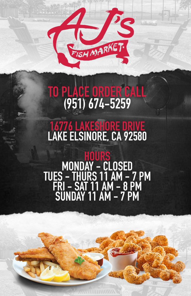 Introducing AJ's Fish Market, a hidden gem located at 16776 Lakeshore Dr, Lake Elsinore, CA. This Black-owned establishment is a culinary haven for seafood lovers and fans of southern-style dishes. The menu features a delectable array of offerings, including their renowned Fish and Chips for $13.95, Buffalo Shrimp Fries with Cheese at $15.50, and a variety of fried favorites like fried okra and the shrimp plate, praised for its generous portion size and flavor.